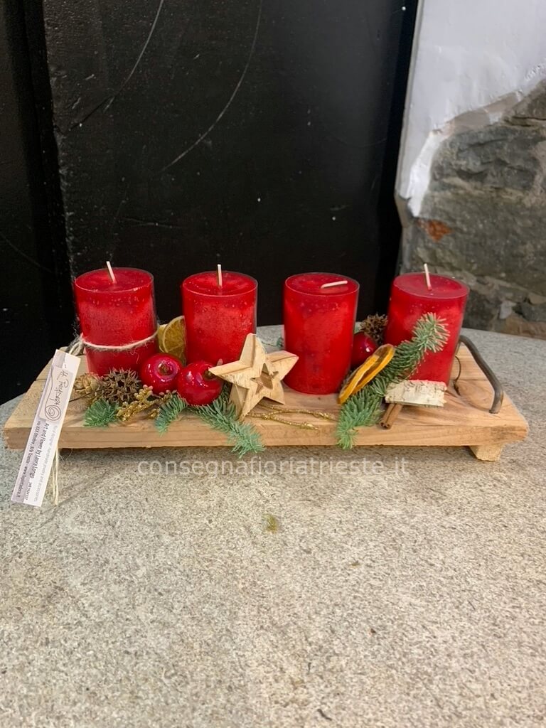 Scegli il nostro Centro Tavola delle Feste Rustico e porta un tocco di freschezza e originalità alle tue feste!Centro tavola in legno con candele marmorizzate tedesche di ottima qualità, decori natalizi naturali e artificiali.